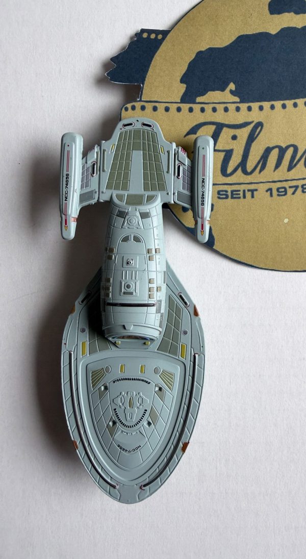 Dieses Modell aus „Star Trek Die offizielle Raumschiffsammlung“ ist aus Metallguss gefertigt. Die Ergänzung durch hochwertige Kunststoffteile und die detailgetreue Handbemalung machen das Modell zu einer präzisen Nachbildung. Die Modelle basieren auf den originalen CGI Studio Modellen und wurden von den ursprünglichen Designern mit entworfen. Dadurch stehen sie den Originalen in nichts nach. Enthalten ist ein Ständer. Das clevere Design sorgt dafür, dass im Schiff kein Loch vorhanden ist. Dieser Artikel wird jeden Fan begeistern.